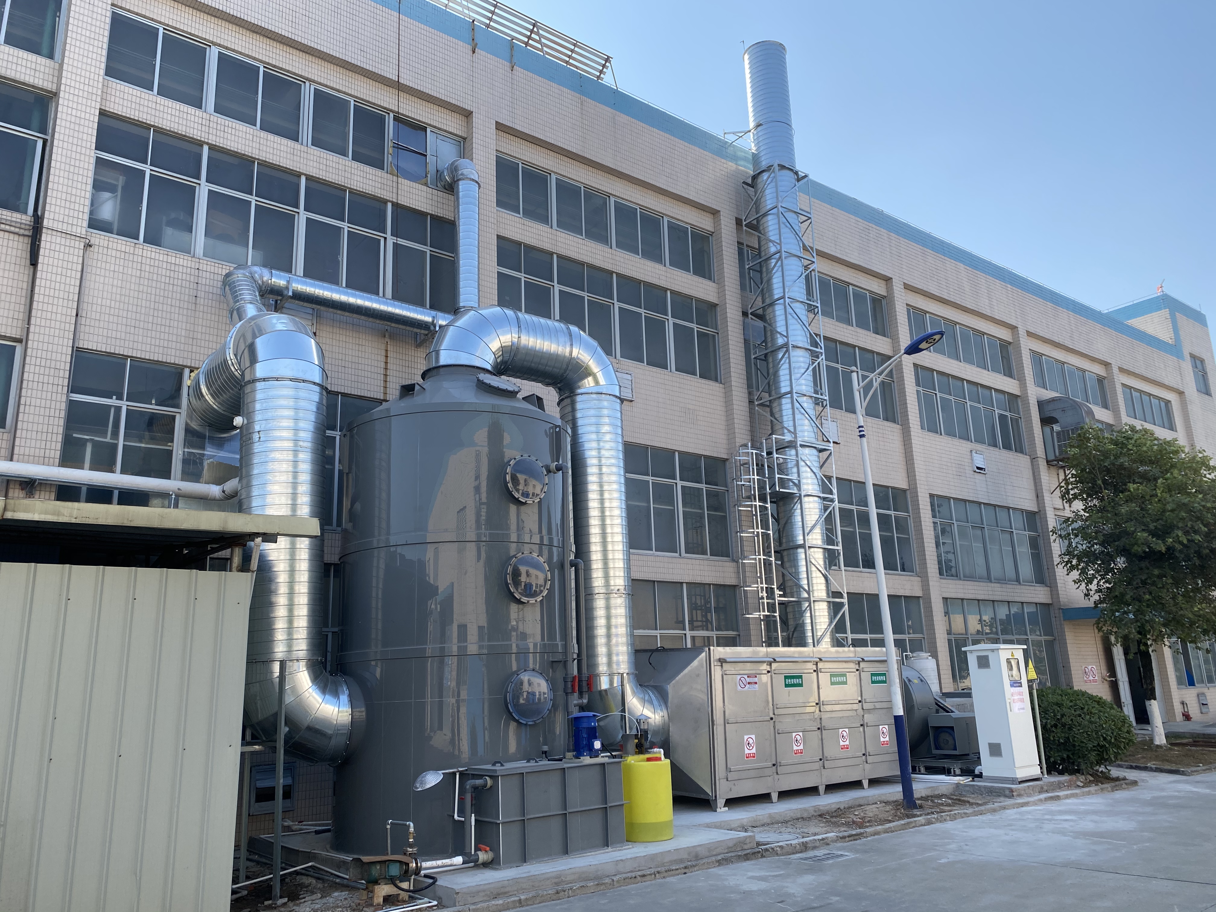 噴淋塔(俗稱:水淋塔)是一種處理煙塵廢氣的濕式環(huán)保設(shè)備,可適用于發(fā)電廠燃燒煙塵、鋼鐵廠、鍋爐燃燒、垃圾燃燒等煙塵廢氣處理,這類的煙氣粉塵容易溶于水,噴淋塔是處理這類煙氣粉塵的不二之選。煙氣粉塵從塔底進(jìn)入塔內(nèi),塔內(nèi)有填料支撐板,噴淋塔從塔頂噴出液體,液體均勻的分布在塔內(nèi)和污染物充分接觸,達(dá)到凈化的效果,最后塔頂排出。