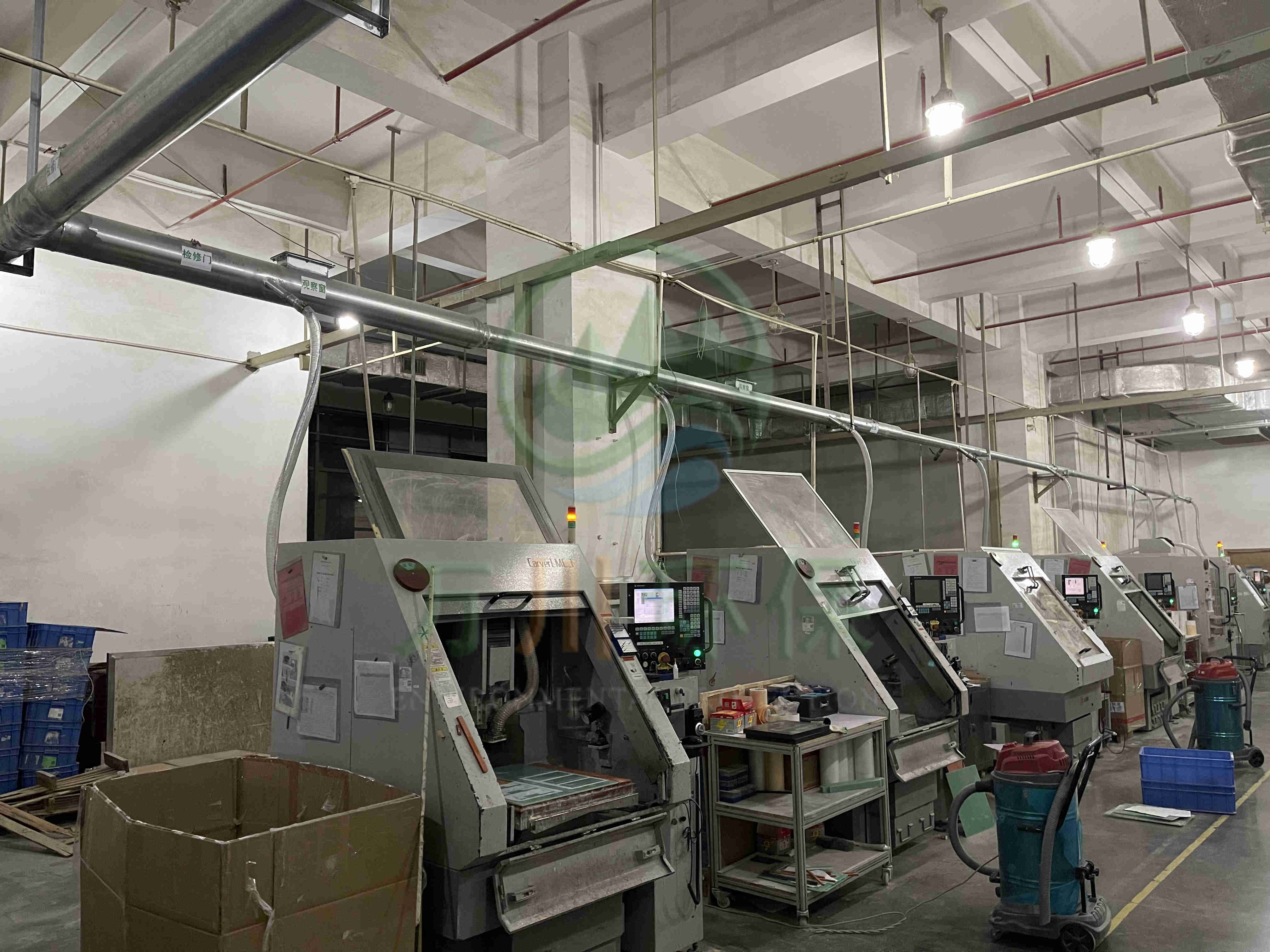 對車間11臺精雕機進行中央集塵,改善車間環(huán)境,符合當?shù)嘏欧艠藴屎头辣?/span>