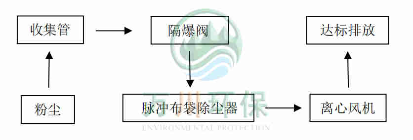 精雕機工作時產(chǎn)生的粉塵通過集氣罩、吸塵軟管進入到脈沖布袋除塵器中過濾凈化,粉塵落入灰斗,凈化后的廢氣通過系統(tǒng)風機達標排放。